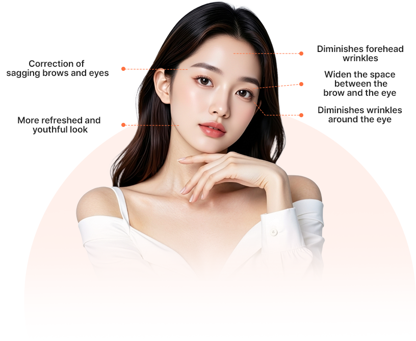 By addressing drooping brows, fine lines
